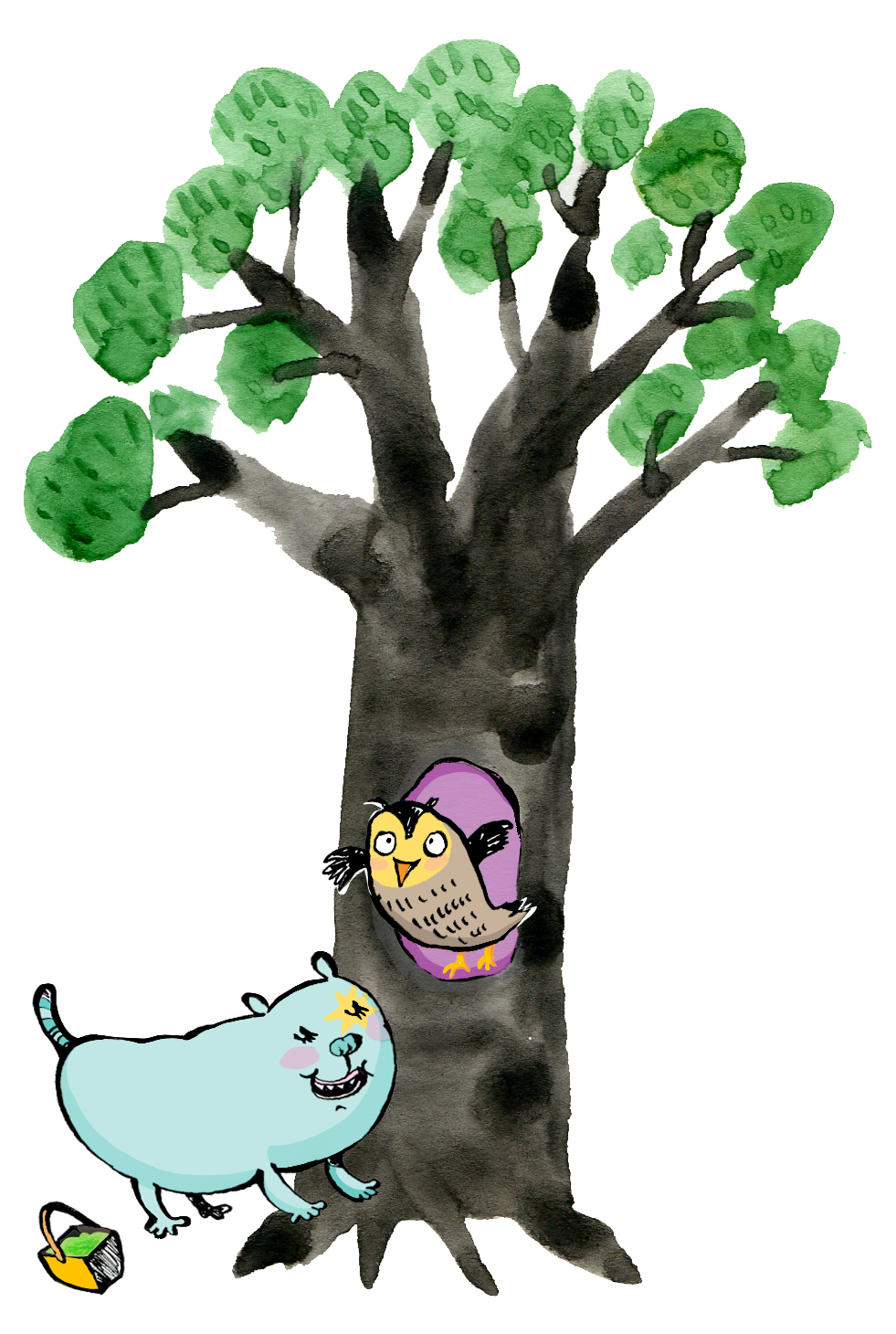 - Tiger och uggla vid trädet